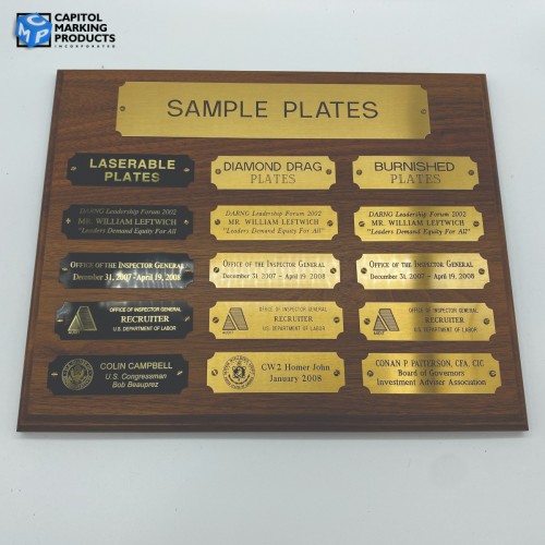 Engraving plates are the perfect way to personalize and complete the look of any award or plaque. We offer a variety of colors, sizes, and styles which can be customized to suit your needs.
